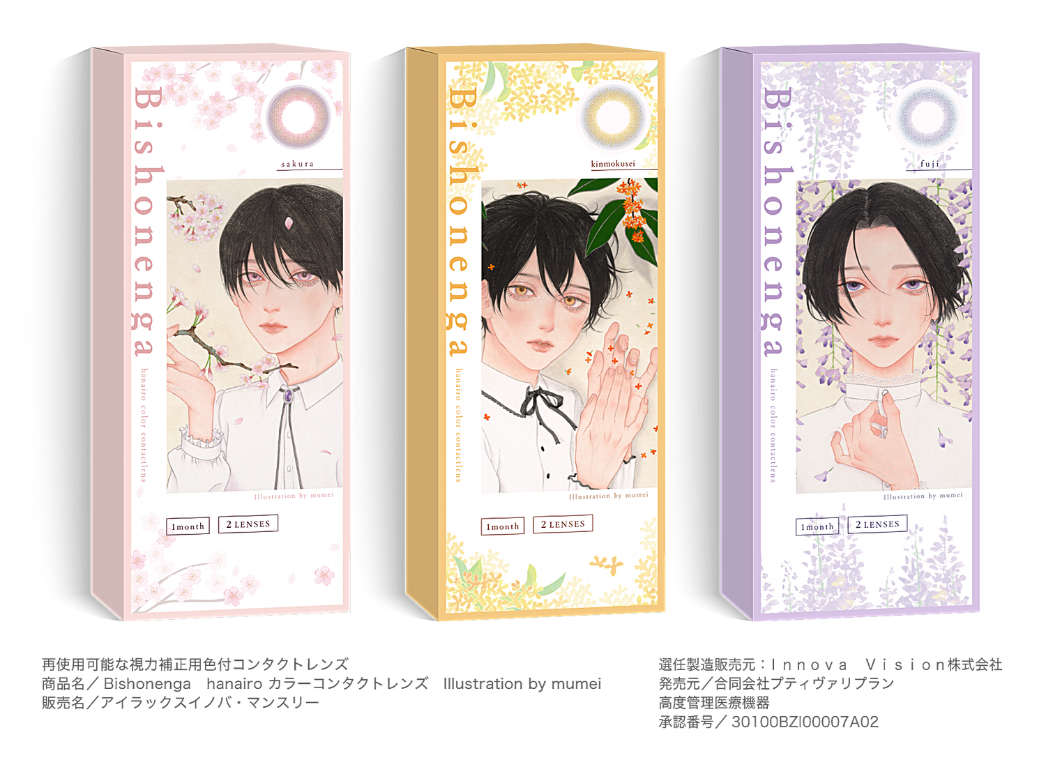 美しさの考えが共通する“花と美少年”に着目し、「花で彩る」をテーマとしhanairo Storyのパッケージを描き、レンズデザインをプロデュースしました。