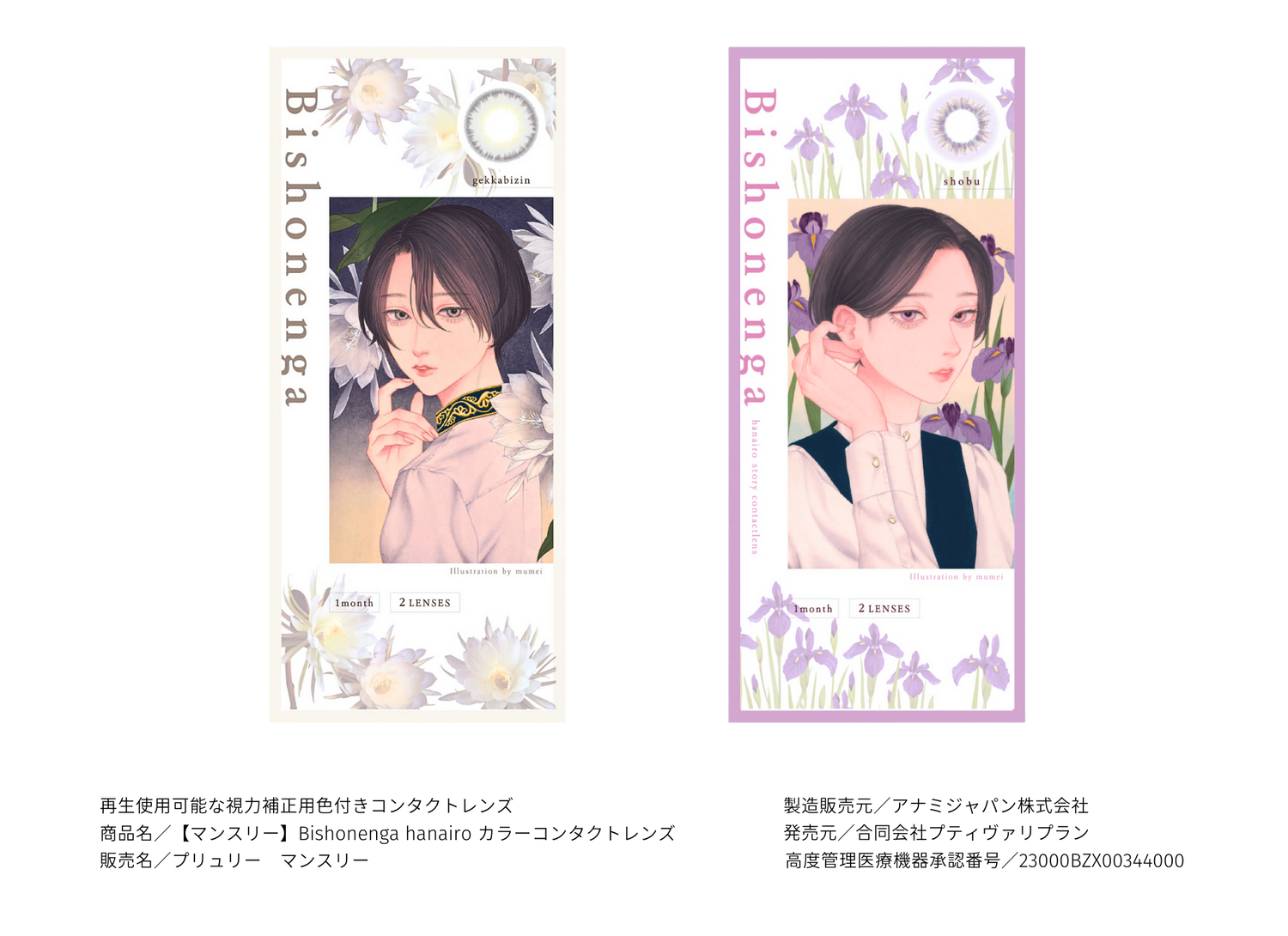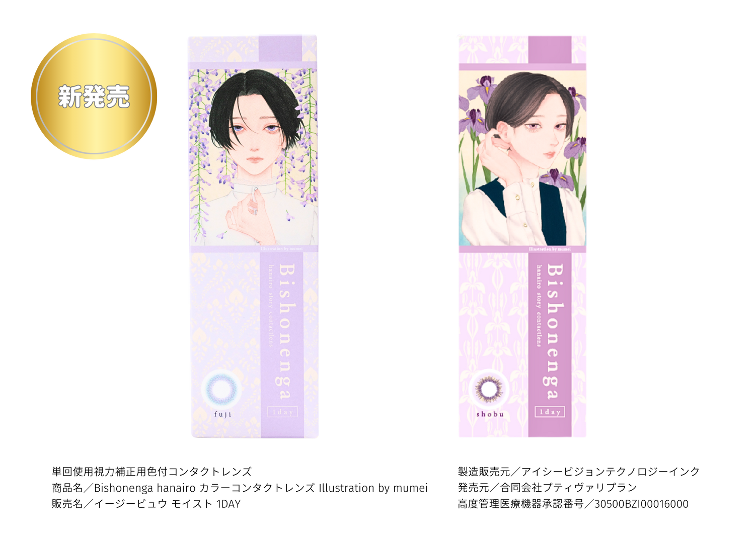 美しさの考えが共通する“花と美少年”に着目し、「花で彩る」をテーマとしhanairo Storyのパッケージを描き、レンズデザインをプロデュースしました。